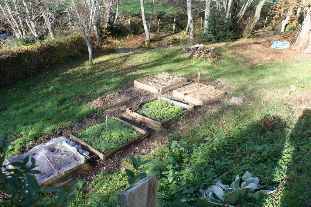 My garden is a complicated mixture of different environments, ranging from a hot, dry south-facing lawn and flower garden to a perpetually shady, and marshy, wooded area. My vegetable and fruit growing mainly takes place in two areas, one on the south-side of the house which can be very hot, dry and quite windy and a zone made up entirely of raised beds behind the house on the west side, partially shaded by some large walnut trees, reasonably humid as it is close the small stream that runs along one of our borders but in full sun at the end of the afternoon.