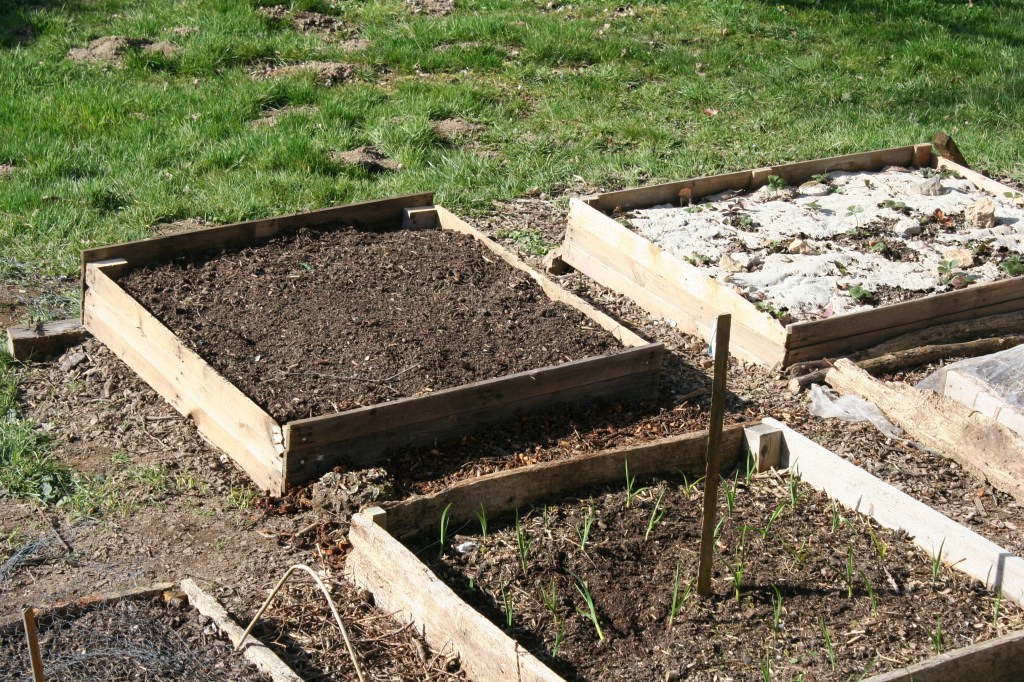I had intended to benefit from the beautiful spring sunshine and to start topping up my raised beds with compost and generally tidying them up ready for planting soon (hopefully), so that became today’s job. I am very pleased with my compost, black, moist and friable. It seems all the hard work filling and turning the 4 x 1 cubic metre bays is paying off, but of course nothing is actually growing in it yet… One of the raised beds I had made from scratch in 2 hours from the usual discarded pallets, cardboard and a handful of roofers’ nails. I now have 10 raised beds, each just over a metre square. Over the last couple of years these have been filled and topped up with probably over 10 cubic meters of the homemade compost.